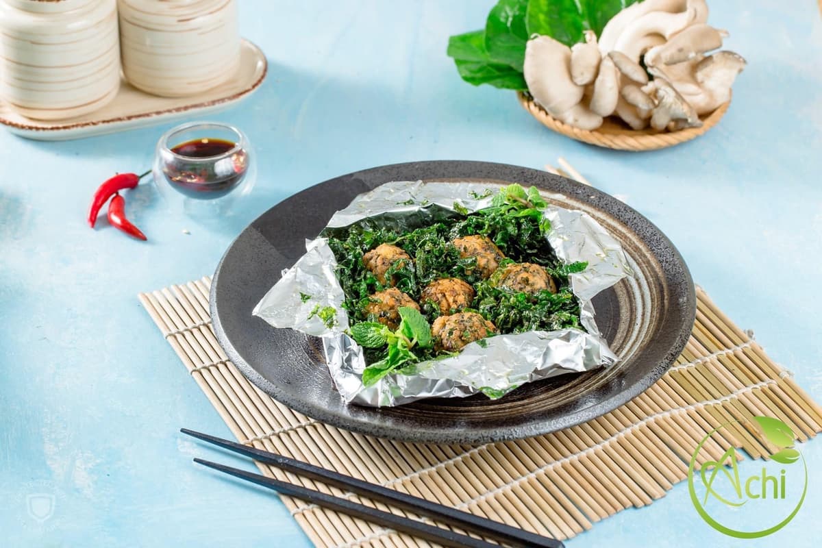 Mỗi món ăn tại Achi là sự kết hợp giữa hương vị Hà Thành truyền thống và nguyên liệu thực vật tự nhiên, từ bún riêu thanh mát đến nem cuốn giòn tan, tất cả đều từ rau sạch, hạt và nấm.