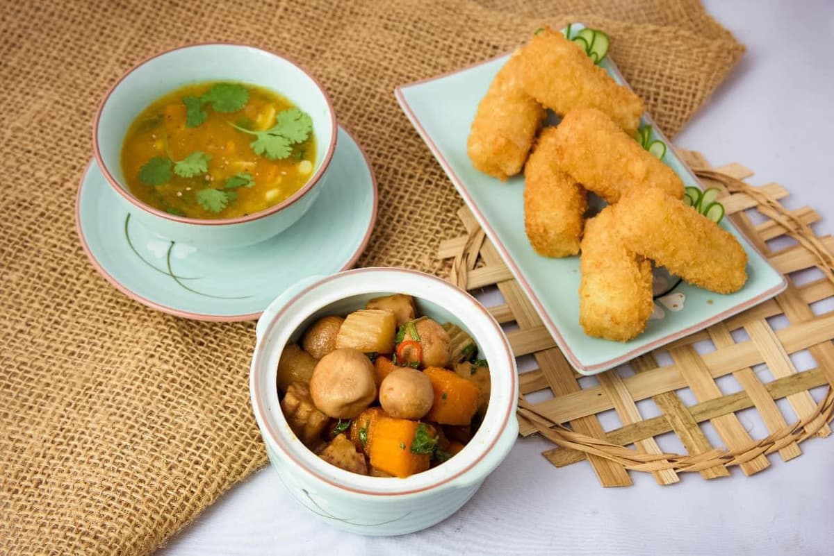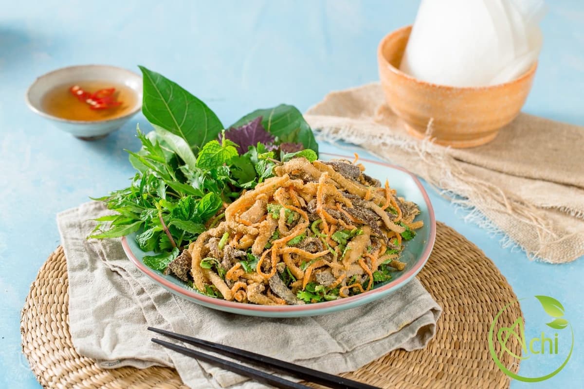 Mỗi món ăn tại Achi là sự kết hợp giữa hương vị Hà Thành truyền thống và nguyên liệu thực vật tự nhiên, từ bún riêu thanh mát đến nem cuốn giòn tan, tất cả đều từ rau sạch, hạt và nấm.